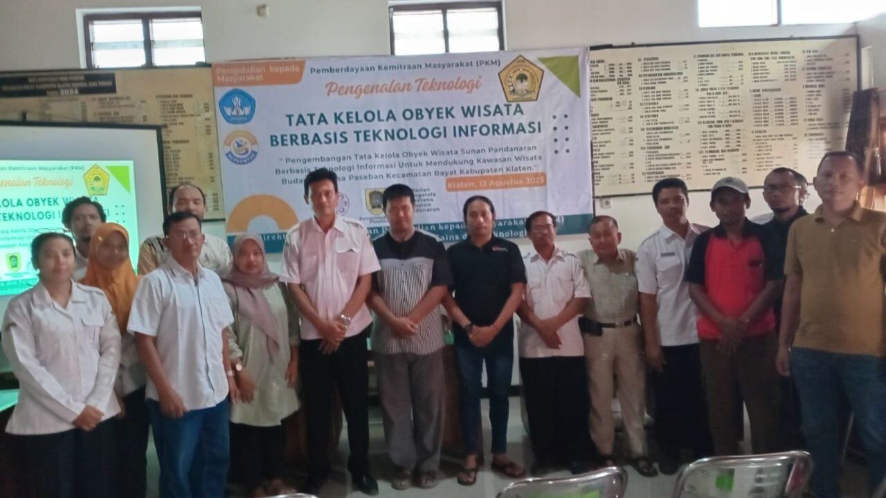 Kolaborasi Tim Pengabdian kepada Masyarakat (PkM) Sekolah Tinggi Pembangunan Masyarakat Desa (STPMD) “APMD” Yogyakarta dan Universitas Proklamasi 45 (UP45) Yogyakarta bekerjasama dengan Pemerintah Desa Paseban Kecamatan Bayat Kabupaten Klaten mengelar Sarasehan Pengenalan Teknologi tentang Tata Kelola Obyek Wisata Berbasis Informasi Teknologi (TI) pada Rabu (13/8/2025) di Aula Balai Desa Paseban Kecamatan Bayat Kabupaten Klaten.